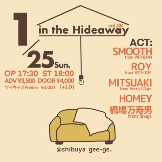 1月25日 in the Hideaway Vol.38 SMOOTH,ROYがソロで出演決定...