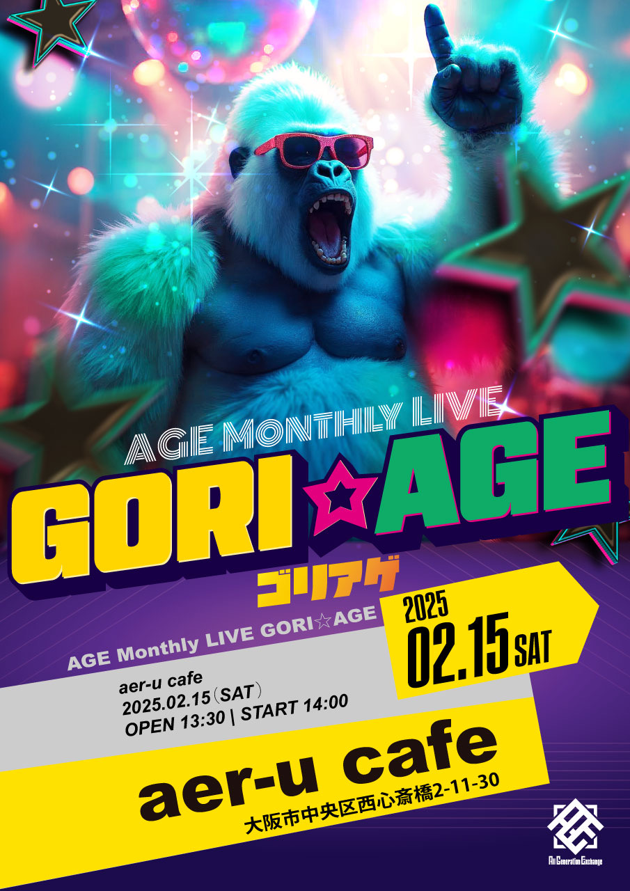 AGE Monthly LIVE「GORI☆AGE」 開催日時:2025年2月15日(土) 開場13:30/開演14:00 会場:aer-u cafe(大阪府大...