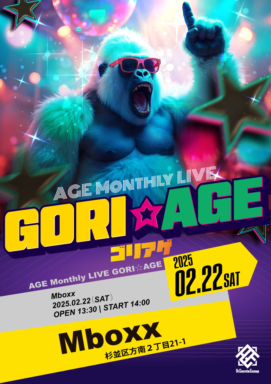 AGE Monthly LIVE「GORI☆AGE」 タイトル:AGE Monthly LIVE「GORI☆AGE」 開催日時:2025年2月22日(土) 開場...