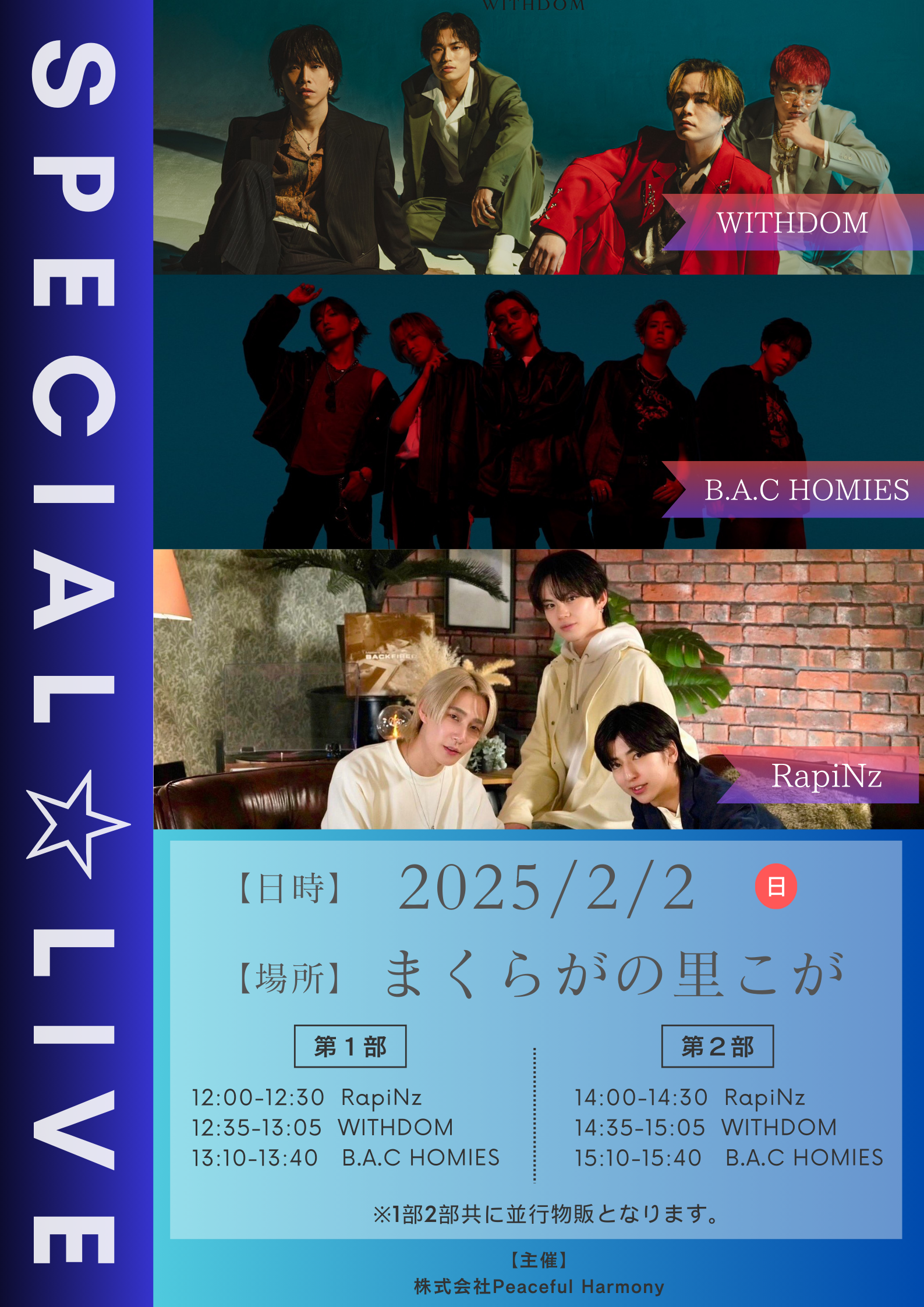 2月2日(日)SPECIAL LIVE 【日程】2025年2月2日(日) 【時間】12:35~/14:35~(予定) 【会場】まくらがの里こが 【出演者】WIT...