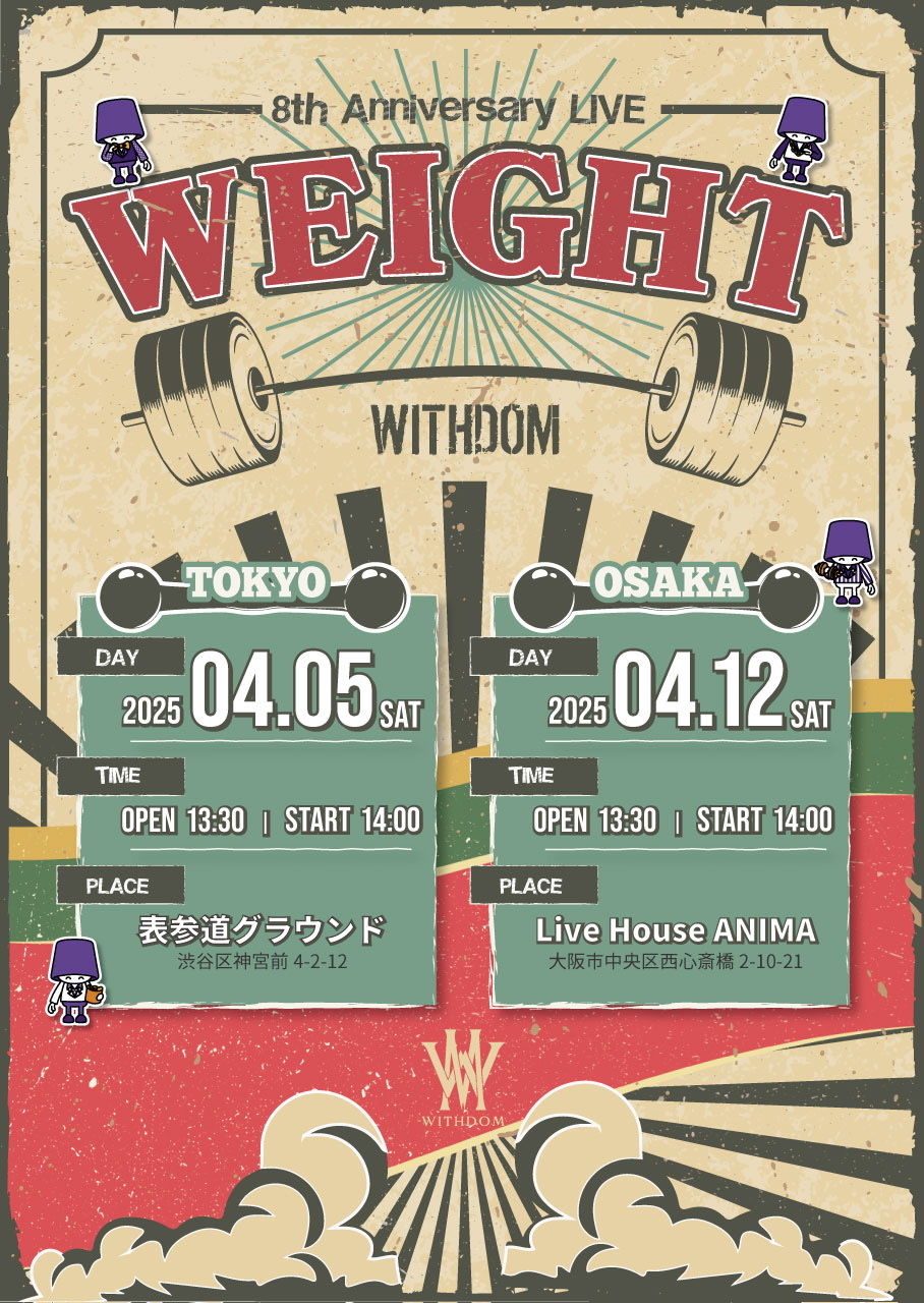 WITHDOM 8th Anniversary LIVE -WEIGHT- 〈大阪公演〉 【日程】2025年4月12日 【時間】OPEN 13:30 ...