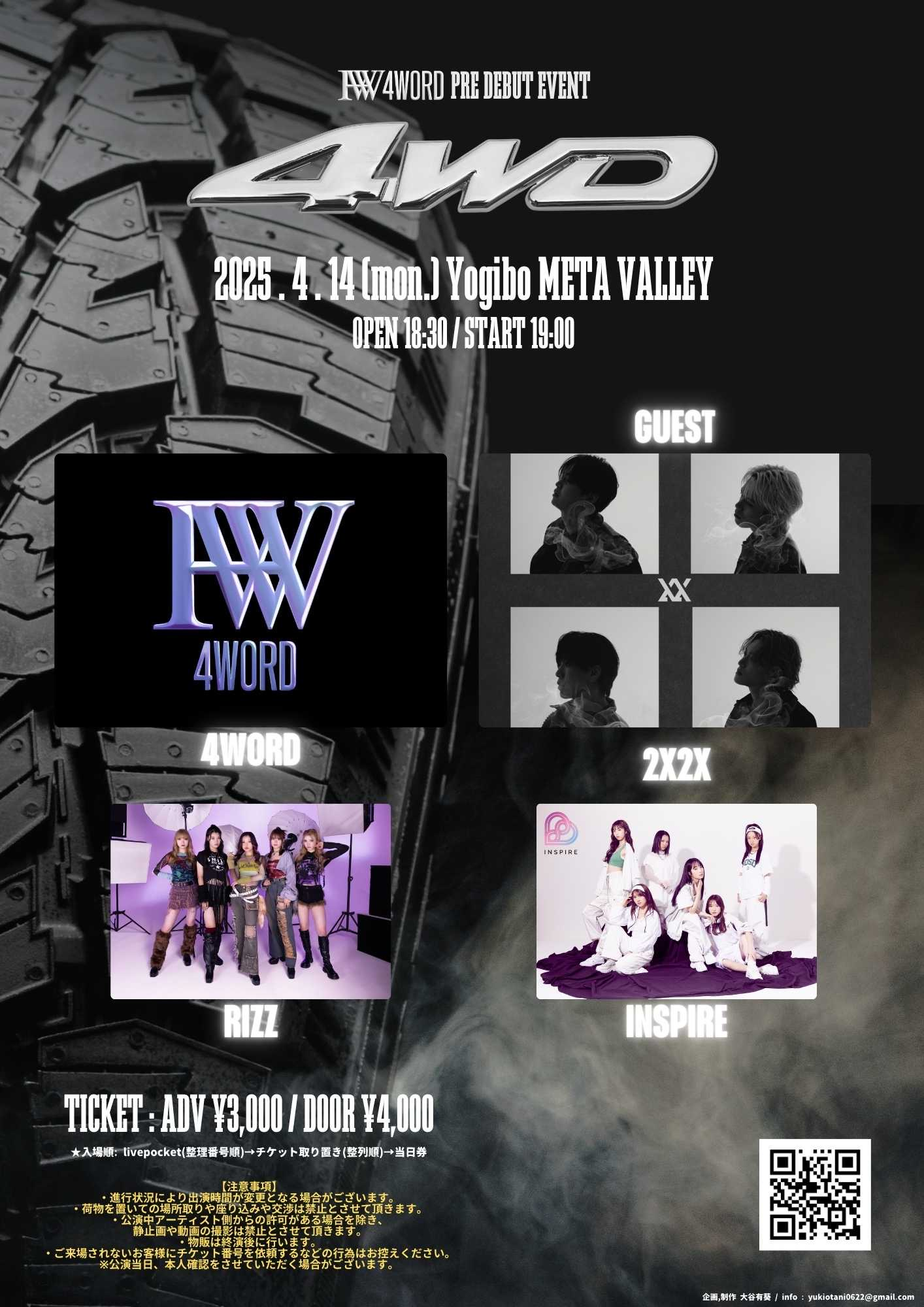 4WORD PREDEBUT LIVE「4WD」 開催日時:2025年4月14日(月) 開場13:30 / 開演14:00 会場:心斎橋 club JOULE...